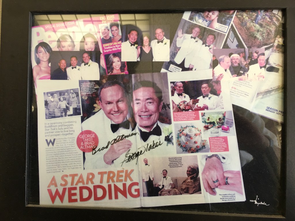 I’ll share three more photos I took while we were there. The photo on the left is of a portion of the front of the studio, where much of Archie’s work is displayed. It was there I saw large photos of people like Condoleezza Rice and Vin Scully, in addition to many others. The center photo is of Archie shooting photos of my family, which consisted of my wife, my MIL and SIL, along with My SIL’s daughter (our niece), her grand daughter by her other daughter (deceased) and our two daughters. The photo on the right is a collage of photos Archie took at the wedding of “Uncle” George Takei and Brad Altman. Click on any of the pics to see a larger version.