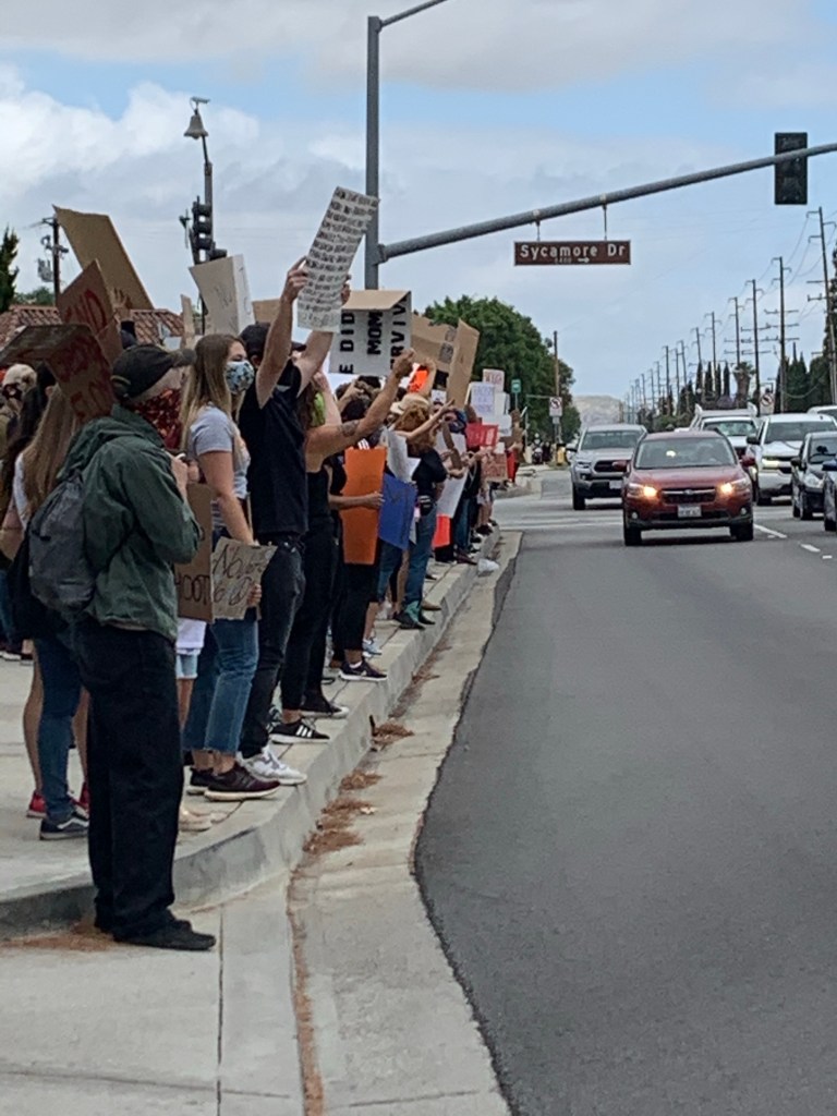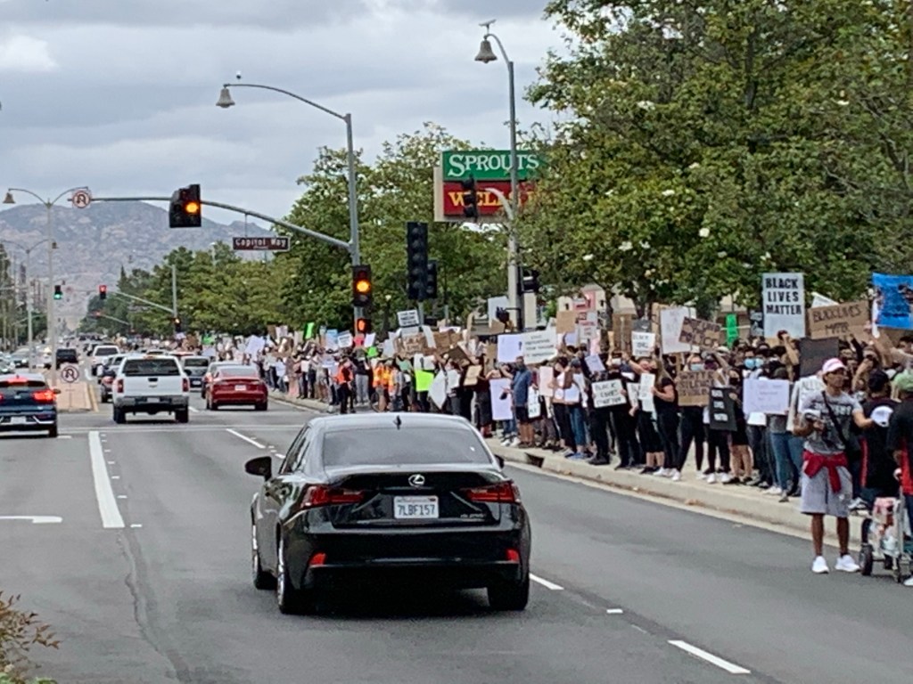 Nevertheless, it’s a beautiful part of the world, just northwest of the San Fernando Valley and I’ve lived here for about 25 years. When I heard that a protest was being planned to support BLM and protest racism and, specifically, the murder of George Floyd, I knew I had to be there (at least for the beginning) to lend my support. I expected 40 – 50 people. Imagine my surprise when I arrived a few minutes early to find hundreds, growing to between one and two thousand by the time the actual march started. Here’s a piece from ABC Eyewitness News’s coverage of the protest.
